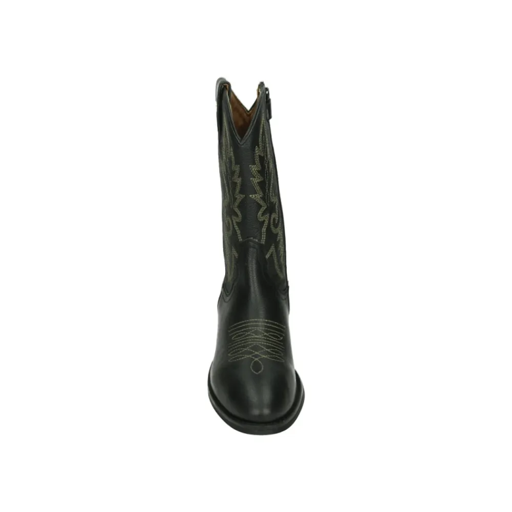 Develab 44374 Cowboy Boots verfügen über ein Obermaterial aus Glattleder mit einem herausnehmbaren Fußbett und einer Gummisohle. Entworfen in einer klassischen Western-Silhouette für praktisches, alltägliches Tragen. Hauptmerkmale: Schwarz | Zwart | Leder | Gummisohle | Herausnehmbares Fußbett | Western-Silhouette | Glattleder-Obermaterial | Abmessungen & Passform: Weite 3 | Zusammensetzung & Pflege: Leder (Obermaterial) | Gummi (Sohle)