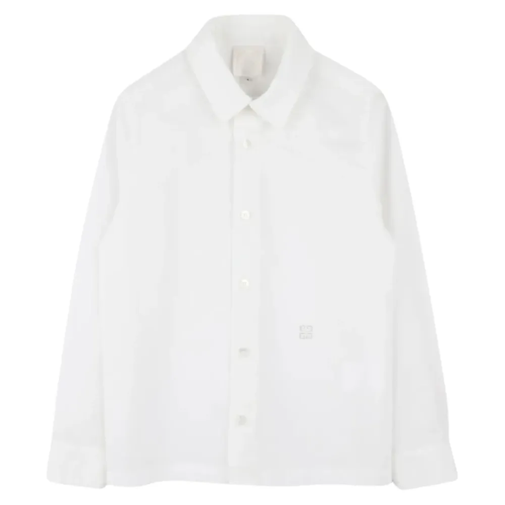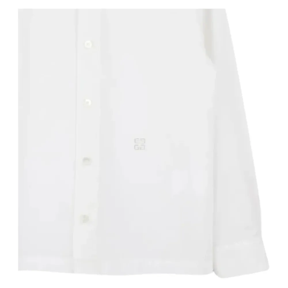 Das Givenchy 4G Bestickte Hemd ist ein klassisches Hemd aus Baumwollpopeline, das das markentypische 4G-Motiv auf der Vorderseite zeigt. Es bietet einen gepflegten Alltagslook mit einem zeitlosen Kragen und Knopfleisten-Design. Hauptmerkmale: Weiß | Baumwolle | Knopfleiste vorne | Geknöpfte Manschetten | Klassischer Kragen | Lange Ärmel | 4G-Motiv auf der Vorderseite bestickt | Popeline-Textur | Abmessungen & Passform: Reguläre Passform | Materialzusammensetzung & Pflege: 100 % Baumwolle | Maschinenwäsche bei 30 °C.