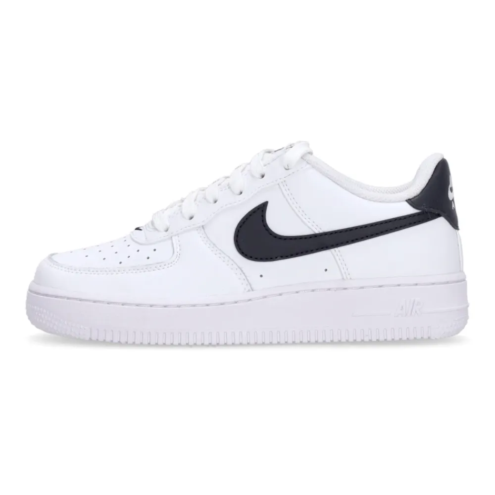 Nike Kindersneaker für Jungen mit niedrigem Design und Schnürverschluss. Mit gesticktem Nike-Logo auf gesticktem Zungenetikett und auf der Fersenverstärkung gedruckt. Gummi-Air-Logo auf überlagerter Platte über der Schaumstoff-Zwischensohle. Swoosh-Logo auf gestickten überlagerten Paneelen. Gummilaufsohle mit pixeligen Flügeln.