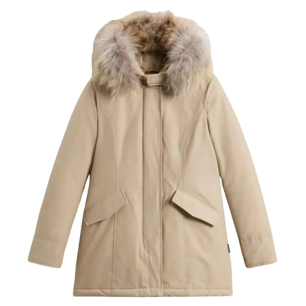 Woolrich Arctic Parka – ein daunenisolierter Parka aus Ramar-Gewebe für zuverlässigen Kälteschutz. Er kombiniert Wind- und Wasserabweisung mit einer abnehmbaren, pelzbesetzten Kapuze für vielseitige, alltägliche Wärme. Hauptmerkmale: Beige | Ramar-Gewebe | Wasserabweisend (Teflonbeschichtung) | Windabweisend | Daunenisolierung für Wärme bei kaltem Wetter | Abnehmbarer Waschbärpelzbesatz an der Kapuze | Verdeckter Reißverschluss und Knopfverschluss | Interner Kordelzug in der Taille für verstellbare Passform | Handwärmertaschen | Innere Stautaschen | Kapuzenparka-Silhouette | Abnehmbarer Pelzbesatz an der Kapuze | Verdeckter vorderer Verschluss | Pattentaschen mit Knopfverschluss | Gerippte Innenbündchen | Maße und Passform: Normale Passform | Zusammensetzung und Pflege: 70 % Graue Entendaunen | 30 % Federn | Beachten Sie die Wasch- und Pflegehinweise auf dem Etikett.