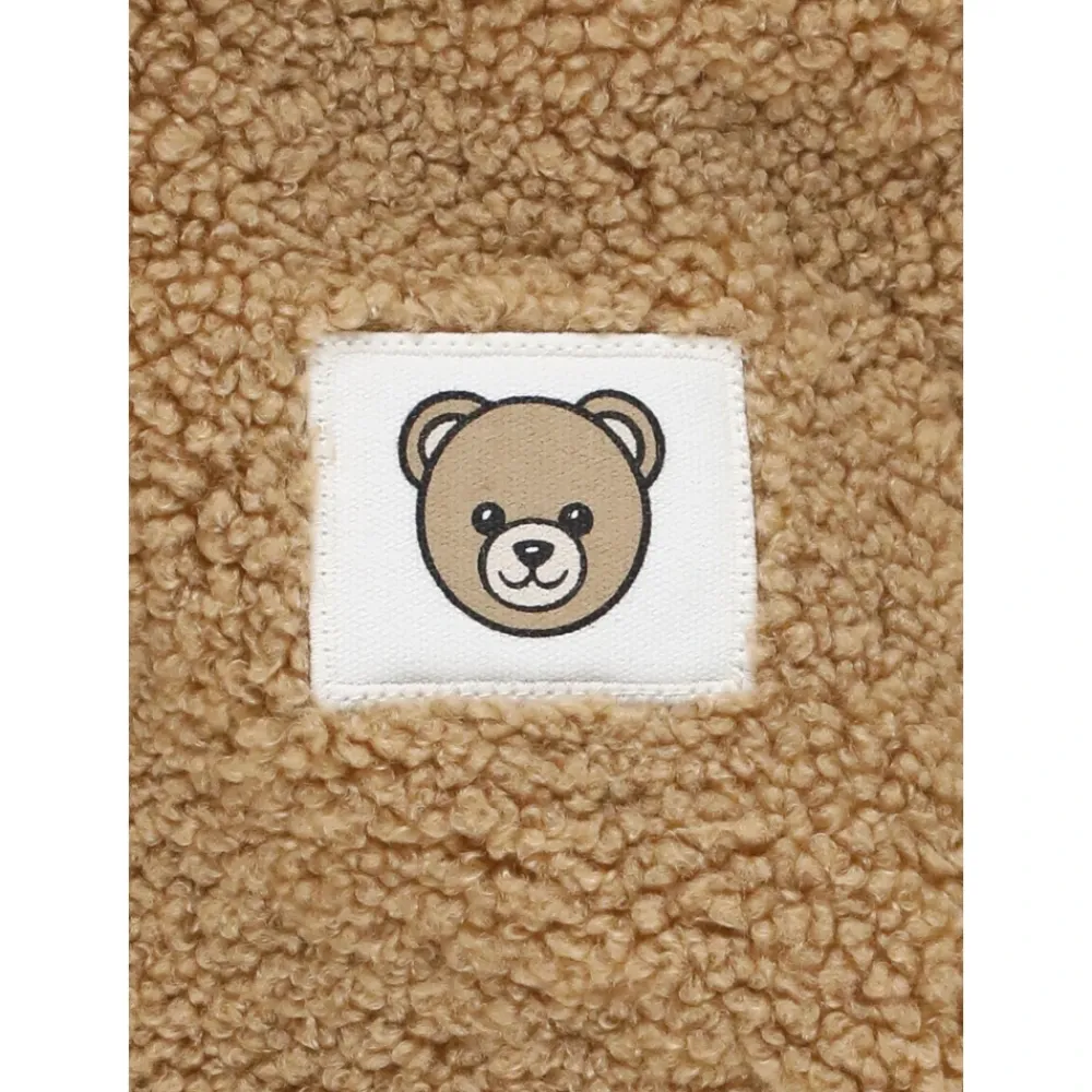 Bleiben Sie mit diesem beigen Moschino Baby Bouclé-Sweatshirt für Jungen stilvoll und gemütlich. Mit Kapuze, langen Ärmeln, Frontreißverschluss, zwei vorderen Schlitztaschen und einem Logo-Patch vorne.