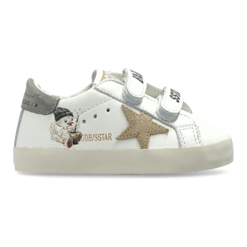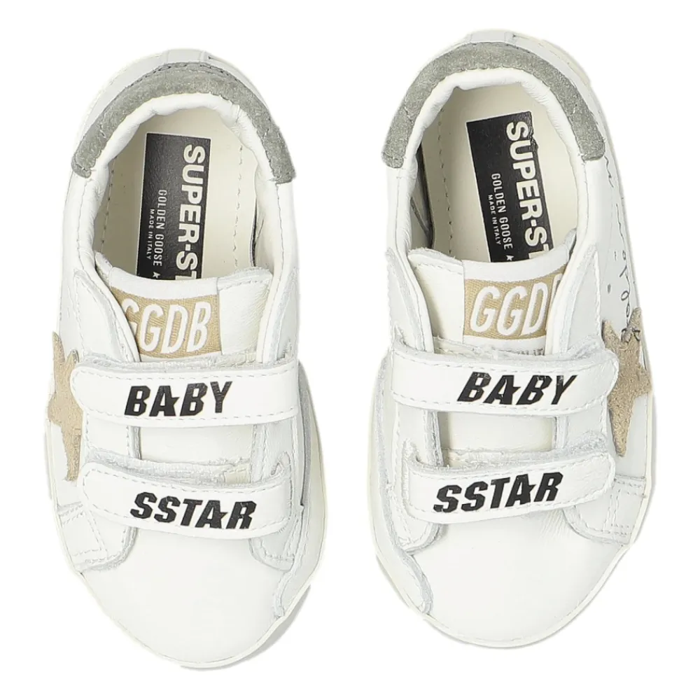 Golden Goose präsentiert die Baby School Sneakers – Ledersneakers, die sich durch eine charakteristische Sternapplikation und Klettverschlüsse zum einfachen Anziehen auszeichnen. Sie kombinieren eine sportliche Silhouette mit einer flachen Gummisohle für täglichen Komfort. Hauptmerkmale: Weiß | Leder | Komfortorientierte flache Sohle | Sicherer Verschluss | Klettverschluss für einfaches An- und Ausziehen | Flache Gummisohle für Stabilität | Charakteristische Sternapplikation | Minimale sportliche Silhouette | Details im Used-Look | Maße & Passform: Innensohlenlänge Größe 16 = 9 cm | Innensohlenlänge Größe 17 = 10,5 cm | Innensohlenlänge Größe 18 = 11 cm | Europäische Größen | Für eine bequeme Passform ca. 1,5 cm mehr als die Fußlänge berücksichtigen | Zusammensetzung & Pflege: Obermaterial: Schafsleder, Rindsleder | Futter: Rindsleder | Sohle: Gummi
