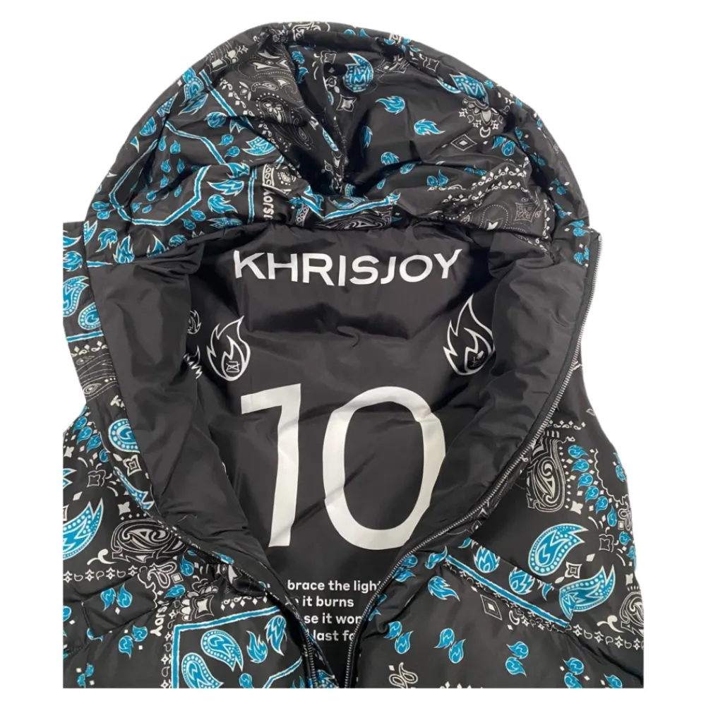 Die Khrisjoy Bandana Print Iconic Daunenweste kombiniert einen auffälligen, kontrastierenden Bandana-Print mit einer warmen, daunen-gefüllten Wattierung für stilvolles Layering bei kaltem Wetter. Hauptmerkmale: Schwarz | Polyester | Daunen-Isolierung | Warm und leicht | Kapuze mit Kordelzug | Frontreißverschluss | Reißverschluss am Saum | Zwei seitliche Leistentaschen | Gepolsterte Konstruktion | Kapuzen-Ausschnitt | Gestepptes Design | Kontrastierender Bandana-Print | Vollständig bedrucktes Futter | Abmessungen & Passform: Oversized-Passform | Materialzusammensetzung & Pflege: 100% Polyester | Füllung: 80% Gänsedaunen, 20% Gänsefedern | Maschinenwäsche