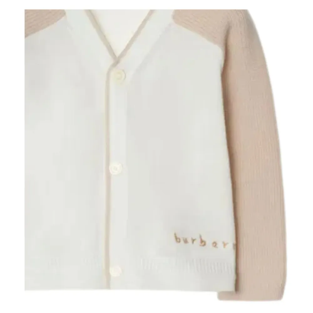 Burberry Baumwoll-Cardigan ist ein Strickcardigan mit V-Ausschnitt, kontrastierenden Ärmeln und dezenter Logo-Stickerei. Er ist für einfaches Layering und den täglichen Gebrauch konzipiert. Hauptmerkmale: Weiß | Beige | Baumwolle | Knopfverschluss | V-Ausschnitt | Lange Ärmel | Kontrastierende Ärmel | Logo-Stickerei vorne | Gerippte Bündchen | Abmessungen & Passform: Reguläre Passform | Materialzusammensetzung & Pflege: 100% Baumwolle | Handwäsche