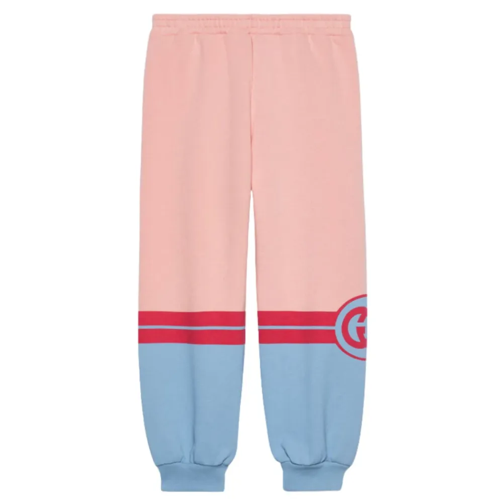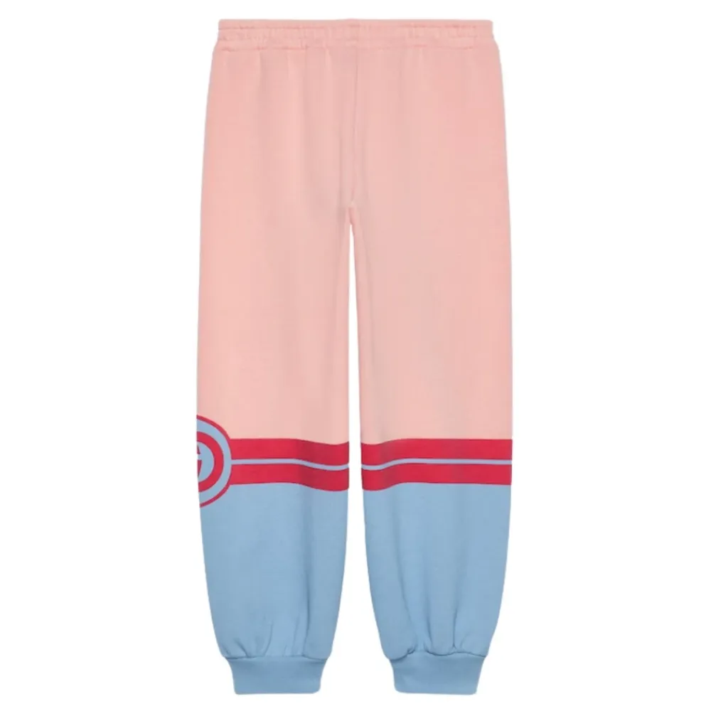 Entdecken Sie die perfekte Kombination aus Komfort und Stil mit dieser Gucci Hose, gefertigt in Italien aus weichem Baumwolljersey und mit einem auffälligen roten GG-Interlocking-Print versehen. Wichtige Merkmale: Pink | Blau | Rot | Baumwolle | Elastischer Bund | Elastische Bündchen | Schlupfform | Auffälliger GG-Interlocking-Print | Maße und Passform: Bequeme Passform | Zusammensetzung und Pflege: 100% Baumwolle | Maschinenwäsche kalt, bei niedriger Temperatur im Trockner trocknen.