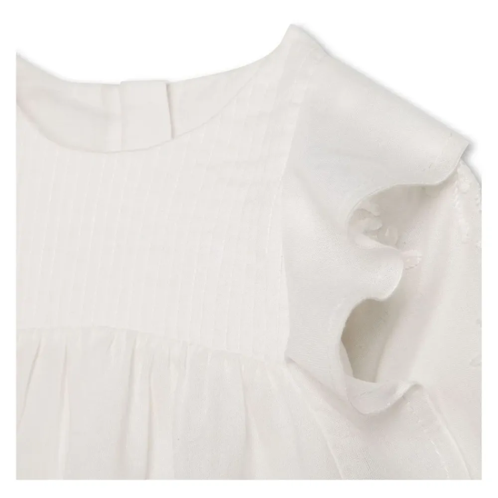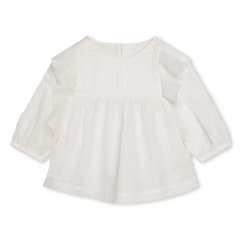 Die Chloé Baumwollbluse mit Rüschen kombiniert Rüschen-, Falten- und Lochstickereidetails für einen raffinierten, femininen Look. Ein verdeckter Reißverschluss hinten und ein Rundhalsausschnitt sorgen für eine klare und einfach zu kombinierende Silhouette. Hauptmerkmale: Weiß | Baumwolle | Verdeckter Reißverschluss hinten | Rüschendetails | Faltendetails | Lochstickereidetails | Rundhalsausschnitt | Lange Ärmel | Gerader Saum | Zusammensetzung & Pflege: Baumwolle