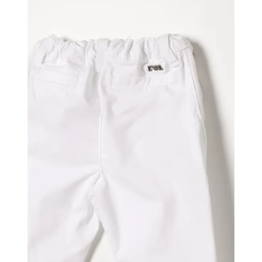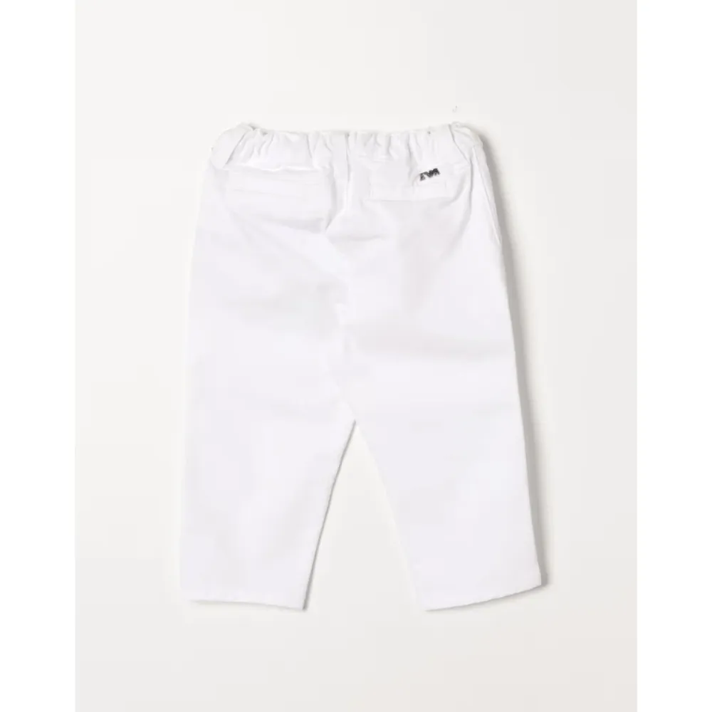 Die Armani Baumwollmischung-Hosen kombinieren eine weiche Baumwollmischung mit einem elastischen Bund für Komfort. Sie verfügen über einen Knopfverschluss und saubere Details für vielseitiges Alltagsstyling. Hauptmerkmale: Weiß | Bianco | Baumwollmischung | Elastischer Bund | Knopfverschluss | Gürtelschlaufen | Seitentaschen | Paspeltaschen hinten | Metalllogo-Detail | Paspeltaschen hinten | Zusammensetzung & Pflege: Baumwollmischung