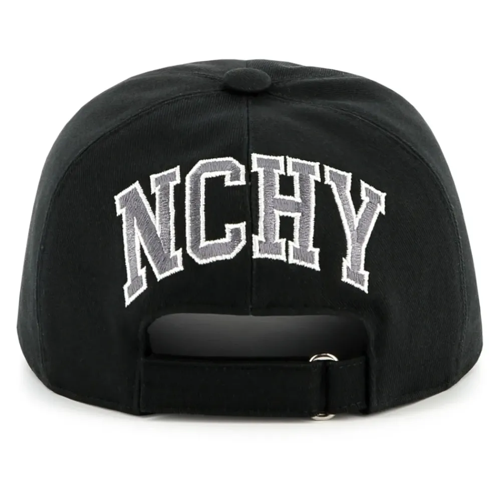 Ergänzen Sie die Accessoire-Kollektion Ihres Kindes mit dieser stilvollen Givenchy-Mütze. Sie zeichnet sich durch ein elegantes schwarzes Design und charakteristische gestickte Logos auf Vorder- und Rückseite aus. Diese Mütze aus 100 % Baumwolle bietet Komfort und Stil und ist eine vielseitige Ergänzung für jedes Outfit. Wichtige Merkmale: Schwarz | Baumwolle | Verstellbarer Riemen | Gebogener Schirm | Gesticktes Logo auf Vorder- und Rückseite | Zusammensetzung und Pflege: 100% Baumwolle | Nicht spezifiziert