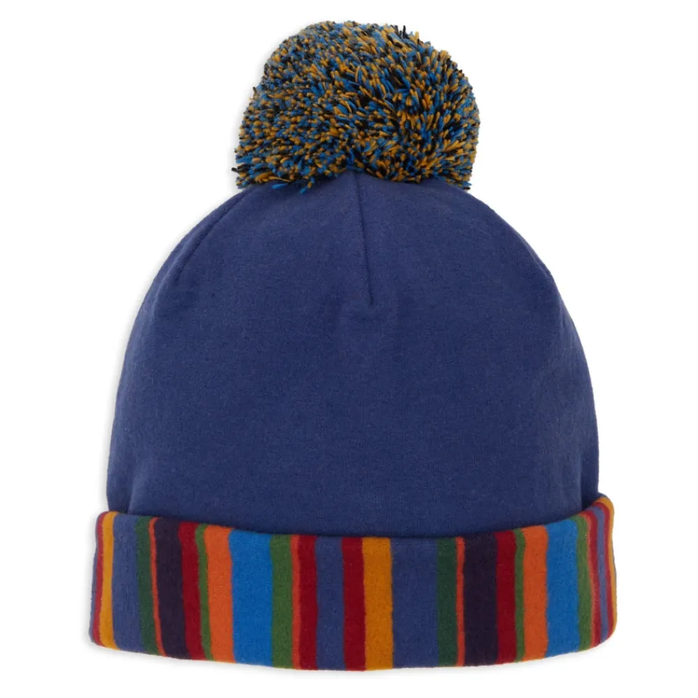 Gallo Beanie mit kontrastierendem Umschlag und Bommel. Diese in Italien gefertigte Stretch-Beanie verfügt über einen mehrfarbig gestreiften Umschlag in Blautönen, der jedem Outfit bei kaltem Wetter einen frechen, verspielten Akzent verleiht. Hauptmerkmale: Multicolor | Abisso | Prato | Stretch-Material | Umschlag | Elastische Verarbeitung | Kontrastierender mehrfarbig gestreifter Umschlag | Bommel