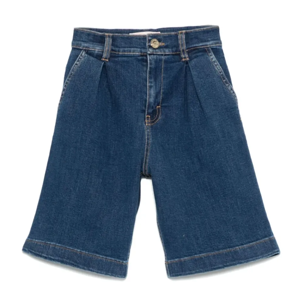 Elisabetta Franchi Bermuda-Shorts aus Denim mit vorderseitigen Bundfalten und einem klaren, geraden Saum. Sie werden mit einem Knopf und einem Reißverschluss geschlossen und verfügen über Gürtelschlaufen für einfaches Styling. Hauptmerkmale: Blau | Denim | Denim | Knopf- und Reißverschluss | Gürtelschlaufen | Vorderseitige Bundfalten | Gerader Saum | Maße und Passform: Normale Passform