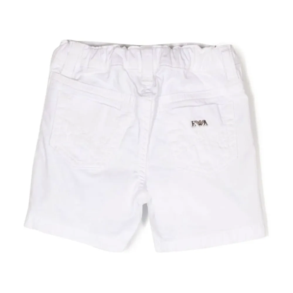 Armani Bermuda bietet ein klassisches Five-Pocket-Styling mit einem innen verstellbaren elastischen Bund für einen sicheren, bequemen Sitz. Entworfen für den täglichen Gebrauch, kombiniert sie Vielseitigkeit in der Garderobe mit funktionalen Details. Hauptmerkmale: Weiß | Bianco | Baumwollmischung | Reißverschluss und Druckknopfverschluss | Fünf Taschen | Innen verstellbarer elastischer Bund | Gürtelschlaufen | Bermuda-Länge | Five-Pocket-Styling | Logo-Patch auf der Rückseite aufgenäht