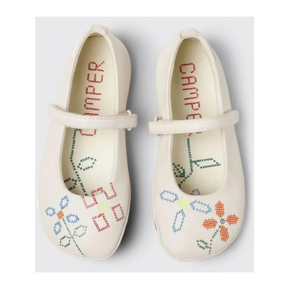 Diese bequemen Ballettflats von Camper sind perfekt, um jedem Outfit eine Note Eleganz hinzuzufügen. Hergestellt aus Leder mit zarten bestickten Details.
