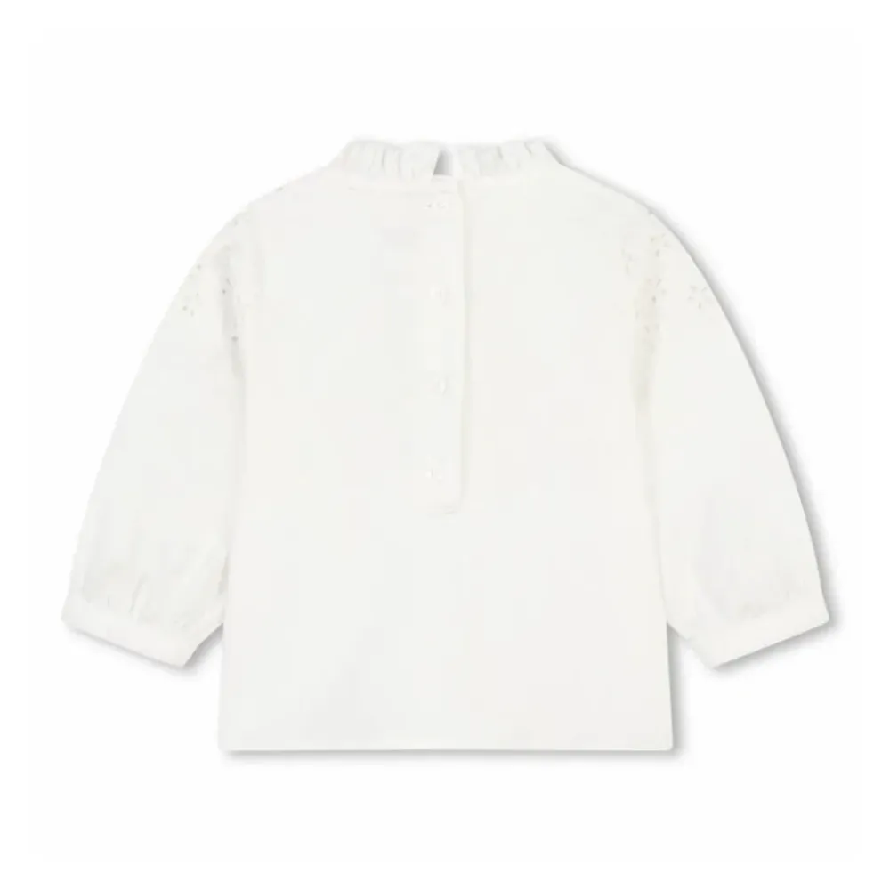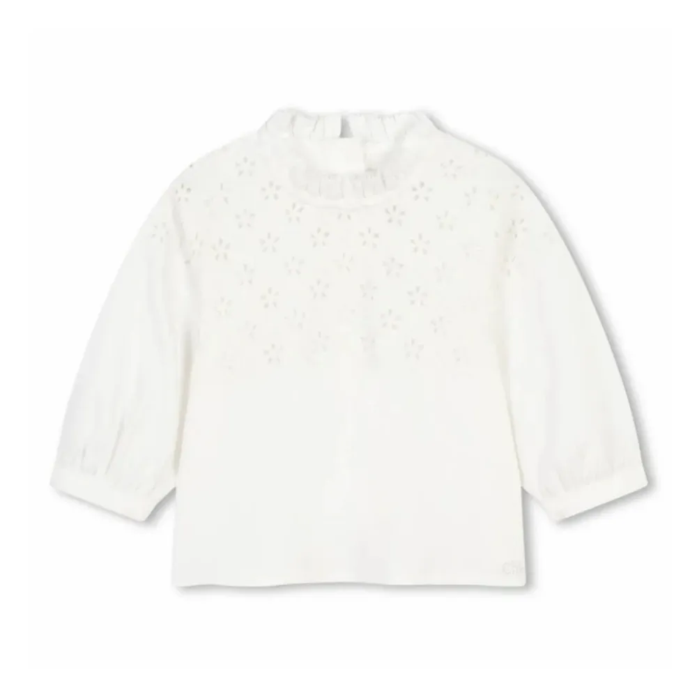 Entdecken Sie die Eleganz des bestickten weißen Baumwoll-Kinderhemds von Chloé, mit aufwendiger Stickerei und einem stilvollen Rüschenkragen, perfekt, um jedem Outfit einen Hauch von Raffinesse zu verleihen. Wichtige Merkmale: Weiß | Baumwolle | Rüschenkragen | Lange Ärmel | Rückenverschluss mit Druckknopf | Gerader Saum | Zusammensetzung und Pflege: 100% Baumwolle | Maschinenwäsche kalt, bei niedriger Temperatur im Trockner trocknen