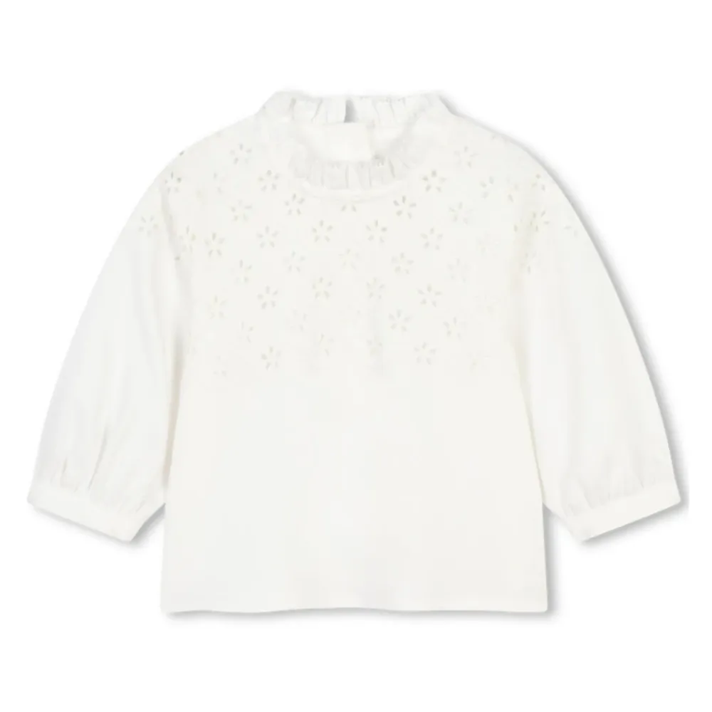 Entdecken Sie die Eleganz des bestickten weißen Hemdes, einer Chloé-Kreation, die zeitlosen Stil mit modernem Design verbindet. Perfekt für jeden Anlass, diese Bluse zeichnet sich durch aufwendige Stickereien und eine raffinierte Silhouette aus. Wichtige Merkmale: Weiß | 100% Baumwolle | Rundhalsausschnitt | Gerüschter Kragen | Lange Ärmel | Druckknopfverschluss hinten | Gerader Saum | Zusammensetzung und Pflege: 100% Baumwolle | Maschinenwäsche kalt, Trocknergeeignet bei niedriger Temperatur.