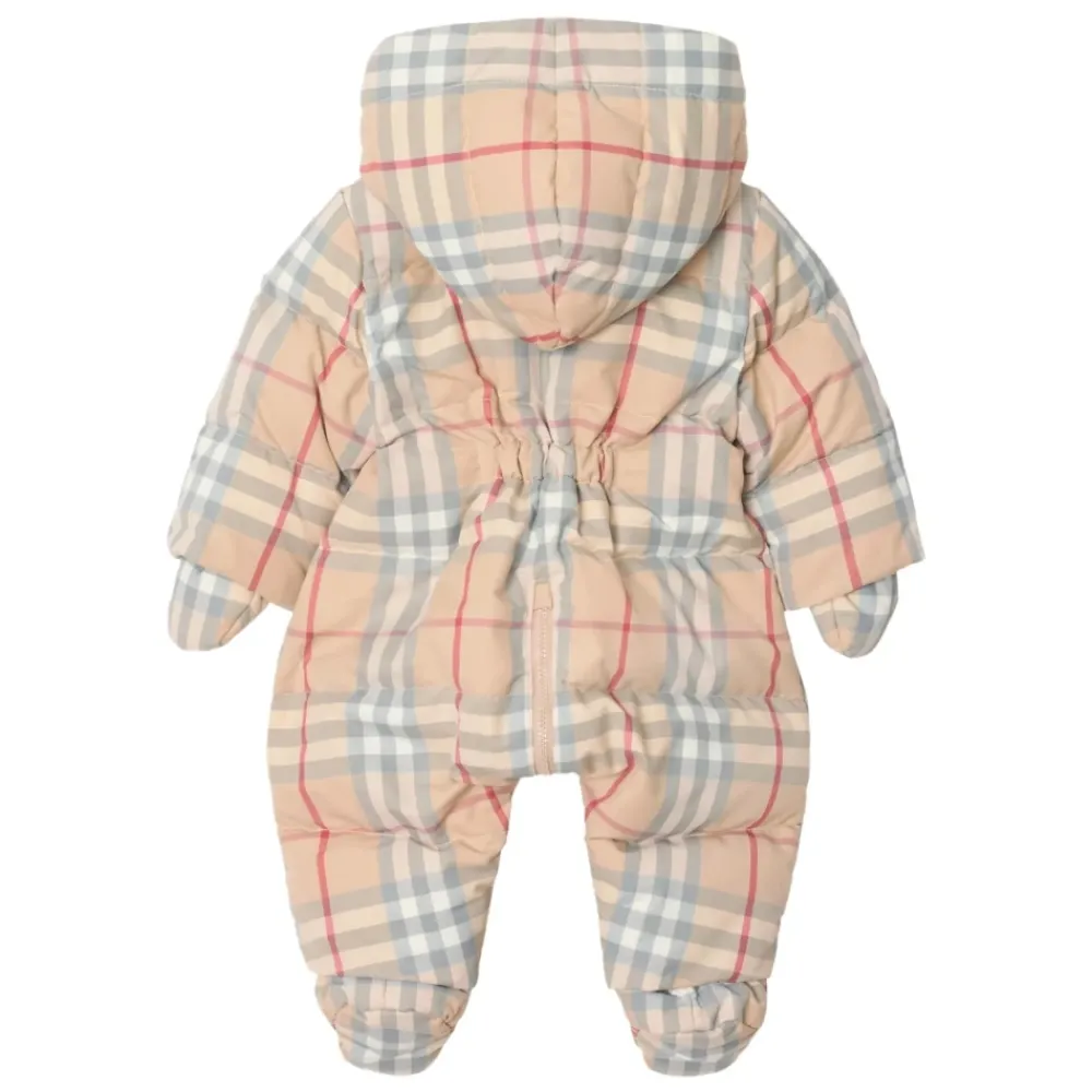 Kleiden Sie Ihr Kleines stilvoll mit Burberrys A2205 PALE STONE IP CHECK ROBINSON Latzhose, perfekt für Outdoor-Abenteuer.