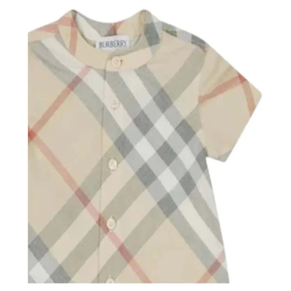 Der Burberry Blurry Check Romper besteht aus weichem Baumwollmaterial mit einem Mandarinkragen und einem Knopfverschluss vorne, der für einfachen Alltagskomfort entworfen wurde. Die Druckknöpfe im Schritt des Rompers vereinfachen das An- und Ausziehen sowie das Windelwechseln. Hauptmerkmale: Multicolor | Grau | Baumwolle | Knopfverschluss vorne | Druckknöpfe im Schritt | Mandarinkragen | Kurze Ärmel | Verschwommenes Karomuster | Zusammensetzung und Pflege: 100% Baumwolle