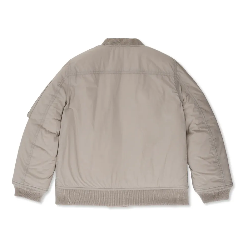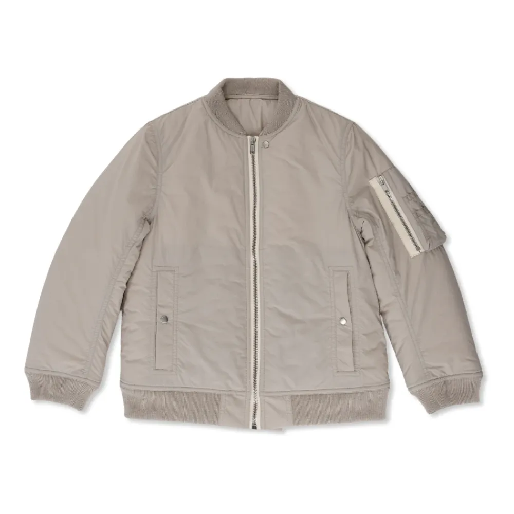 BOMBERJACKE aus der Rick Owens Kids-Kollektion besticht durch ihre raffinierte Minimalismus und modernen Charakter, perfekt im Einklang mit dem Geschmack eines jungen Modekenners. Ihr klassischer, verkürzter Schnitt mit sanft gerundetem Saum und taillierte Passform, die durch elastische Strickrippen erreicht wird, betont die Silhouette und bietet Eleganz für den täglichen Gebrauch. Die äußere Schicht, gefertigt aus hochwertigem Nylon, strahlt Leichtigkeit und Langlebigkeit aus, während Woll-Details einen Hauch von Exklusivität hinzufügen. Die Jacke bezaubert mit ihrer glatten Oberfläche, und die schlichten Abschlüsse heben ihre raffinierte Einfachheit hervor. Sie sticht heraus mit präzise platzierten ZWEI VORDEREN KLAPPENTASCHEN, die mit eleganten Metall-Druckknöpfen verschlossen sind, und einem robusten Reißverschluss mit kontrastierender Kante, die zusammen harmonisch ihren einzigartigen Charakter vervollständigen. WARUM DIESES PRODUKT KAUFEN? * Hergestellt aus strapazierfähigen und edlen Materialien * Zeitloses, minimalistisches Design * Außergewöhnlicher Tragekomfort dank elastischer Abschlüsse * Praktische und sichere Taschen * Signatur eines renommierten Designers