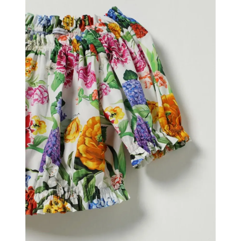 Verleihen Sie der Garderobe Ihres Kindes mit diesem Dolce & Gabbana Top mit einem lebendigen Multicolor-Design eine verspielte und stilvolle Note. Hergestellt aus hochwertigem 100% Baumwoll-Popeline für Komfort und Strapazierfähigkeit. Wichtige Merkmale: Multicolor | 100% Baumwoll-Popeline | Off-Shoulder-Ausschnitt | Blumenmuster | Kurze Ärmel | Maße und Passform: Normale Passform | Zusammensetzung und Pflege: 100% Baumwolle | Maschinenwäsche kalt, bei niedriger Temperatur trocknen
