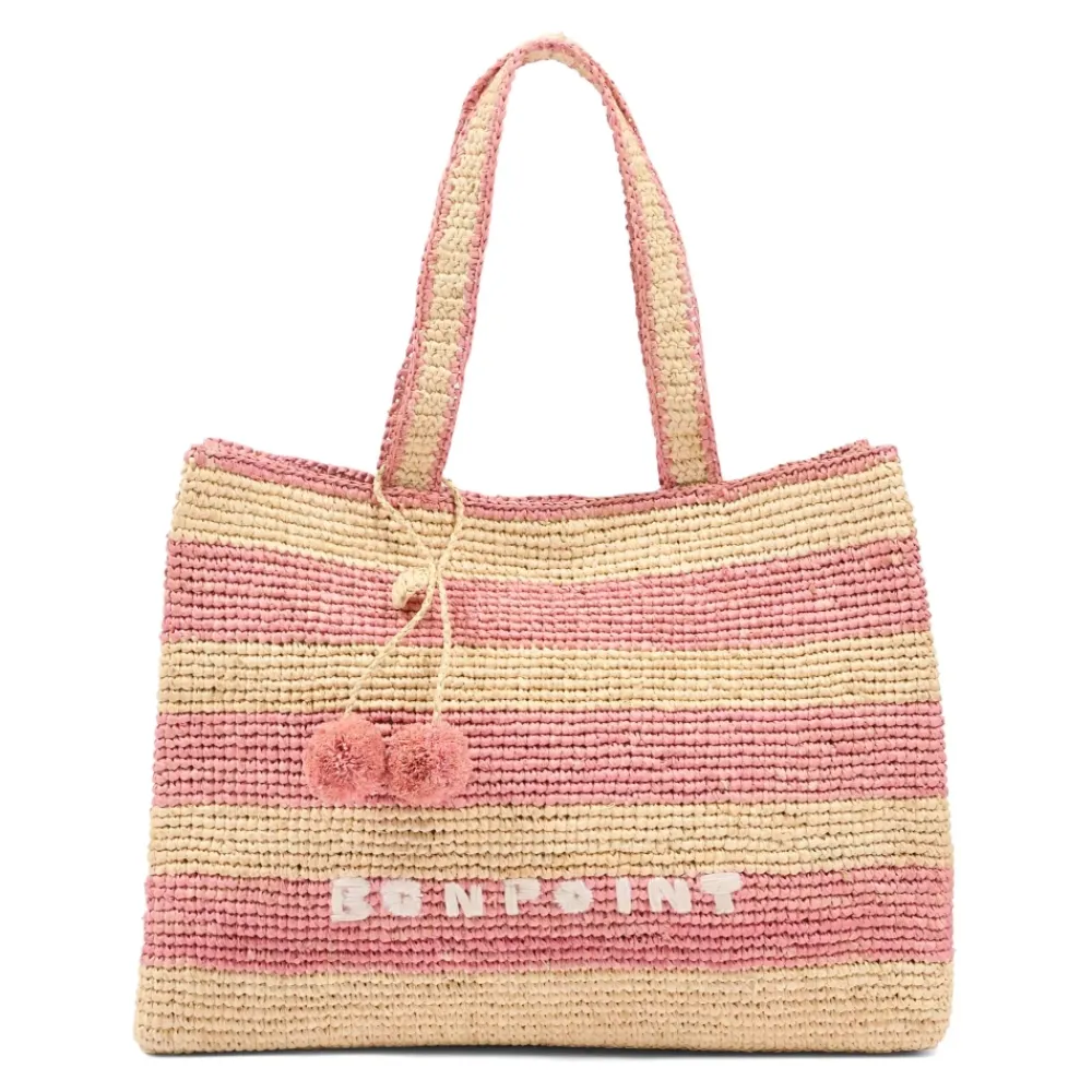 Bonpoint Basttasche mit Streifendesign, einem Druckknopfverschluss oben und dem charakteristischen Kirsch-Charm der Marke – ideal für Strandtage und lässige Ausflüge. Hauptmerkmale: Beige | Bast | Tragegriffe | Druckknopfverschluss oben | Gestreiftes Muster | Logo-Verzierung vorne | Kirsch-Charm vorne | Abmessungen & Passform: 32cm x 24cm x 13cm | Zusammensetzung & Pflege: 100% Bast