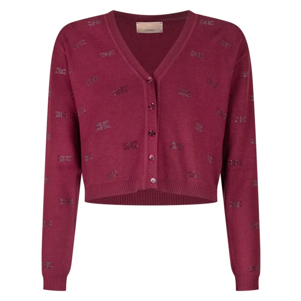 Cardigan aus Viskose mit Logo-Strasssteinen>Elisabetta Franchi Outlet