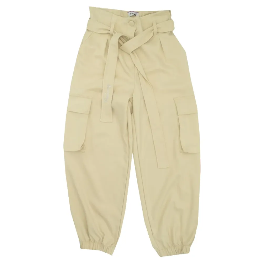Werten Sie die Garderobe Ihres kleinen Mädchens mit diesen stilvollen Pinko Kids beige Cargo-Hosen auf. Mit passendem Gürtel, verziert mit einem Strass-Logo-Applikation, elastischem Bund hinten, zwei Seitentaschen, zwei aufgesetzten Cargotaschen, elastischen Knöcheln und teilweisem Innenfutter. Hergestellt aus 64% Polyester, 34% Rayon und 2% Elastan.