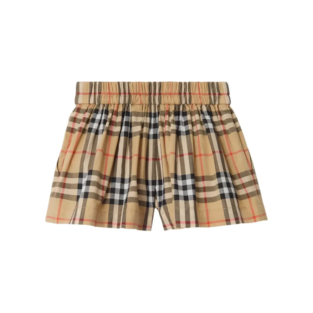 Die Burberry Check Baumwollshorts zeigen das typische beige Karomuster der Marke und einen gerafften, elastischen Bund für einfaches Tragen. Die weite Silhouette und die seitlichen Eingrifftaschen machen sie praktisch für alltägliche, warme Wetteroutfits. Hauptmerkmale: Multicolor | Neutrals | Schwarz | Baumwolle | Elastischer Bund | Seitliche Eingrifftaschen | Beiges Karomuster | Geraffter Bund | Weites Bein | Abmessungen & Passform: Weites Bein | Geraffter Bund mit elastischem Bund | Materialzusammensetzung & Pflege: 100% Baumwolle | Maschinenwäsche