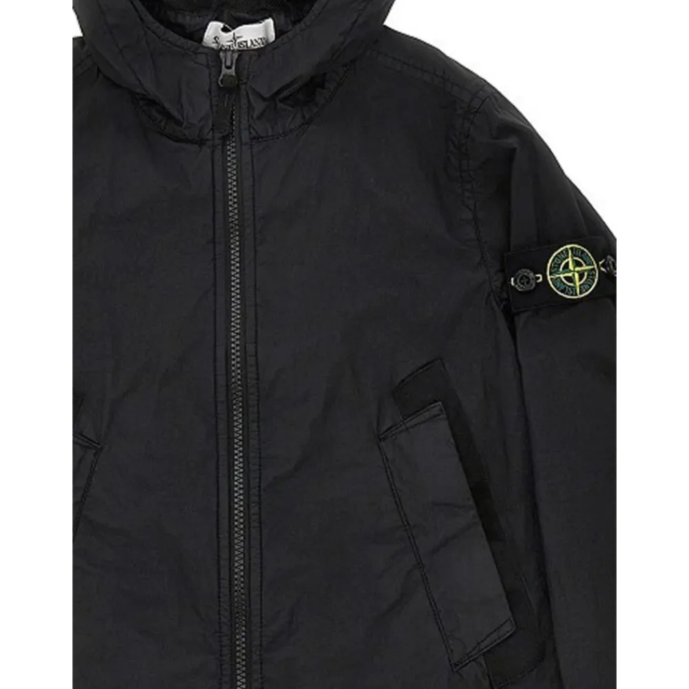 Stone Island leichte Jacke, entworfen für leichtes Layering und den täglichen Gebrauch. Das Modell kombiniert funktionale Details mit einer klaren, urbanen Silhouette. Hauptmerkmale: Schwarz | Polyamid | Kapuze | Reißverschluss | Logo-Patch auf dem Ärmel | Stehkragen | Maße u0026 Passform: Normale Passform | Materialzusammensetzung u0026 Pflege: 100% Polyamid