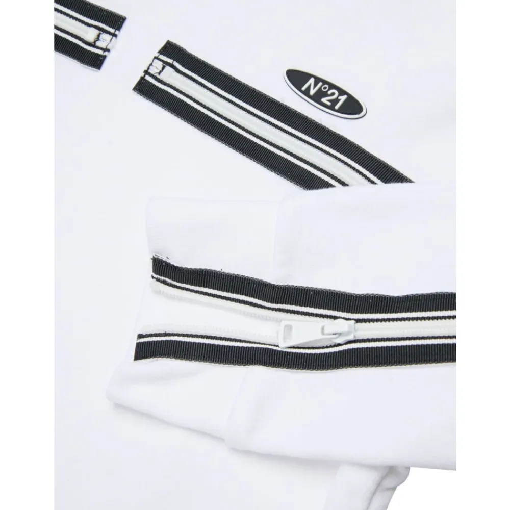 N21 Crew Neck Sweatshirt mit Streifendetail und Logo-Patch, entworfen für den Alltag und einfaches Layering. Hauptmerkmale: Weiß | Reißverschlussbündchen | Rundhalsausschnitt | Lange Ärmel | Streifendetail | Logo-Patch