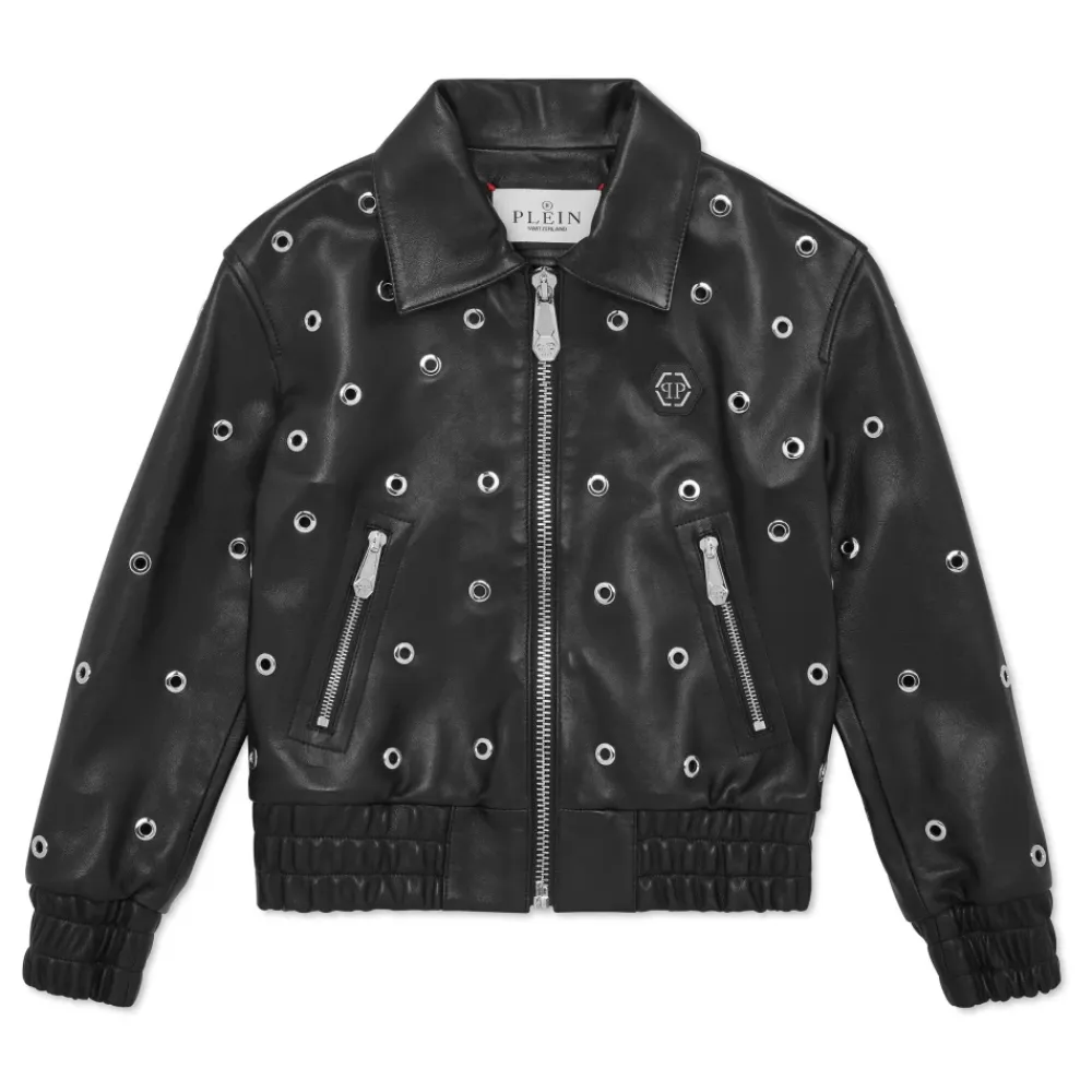 Cropped Leather Bomber LS Eyelet>Philipp Plein