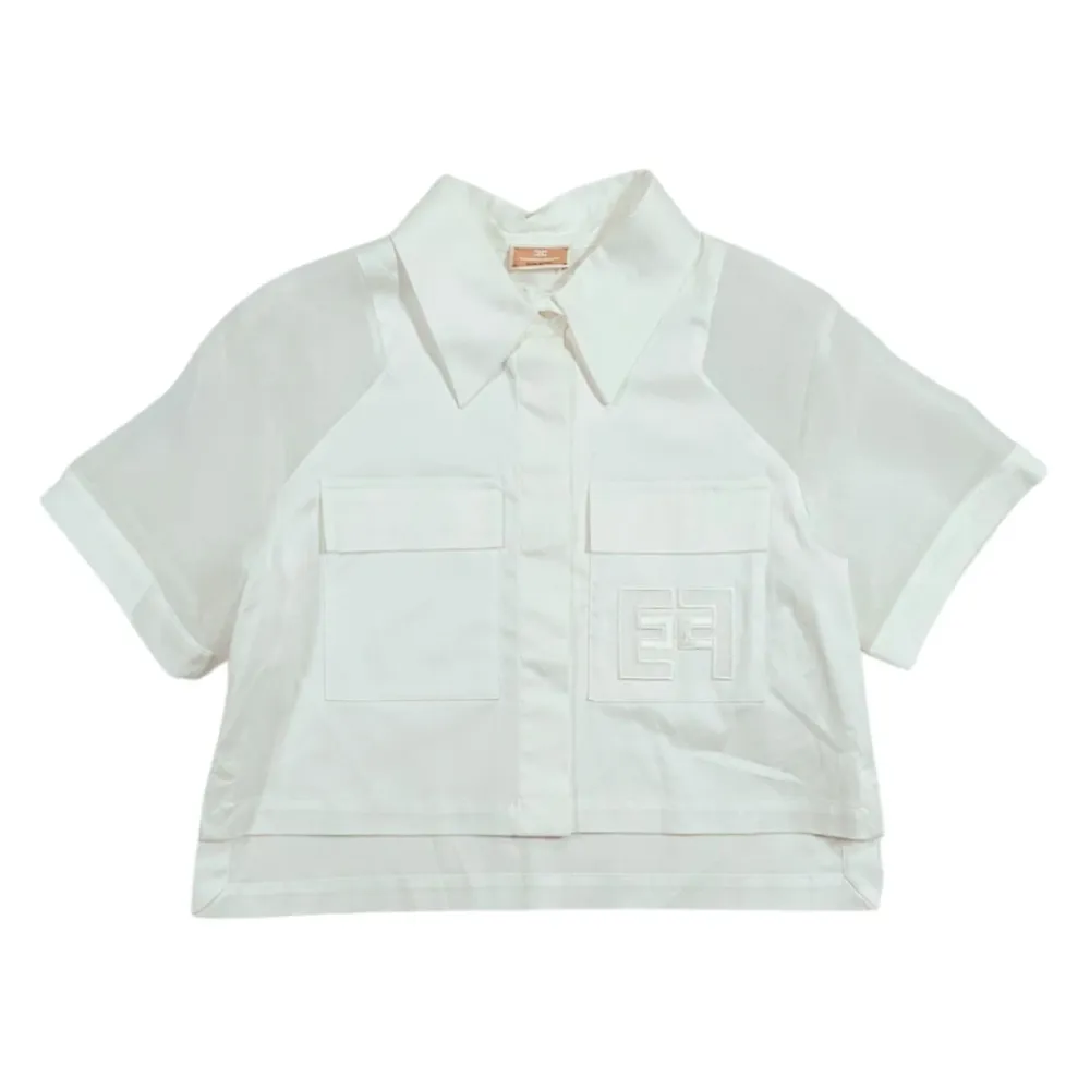 Das Elisabetta Franchi Cropped Poplin Shirt kombiniert eine taillierte, verkürzte Silhouette mit zarten Voile-Einsätzen für ein raffiniertes, alltagstaugliches Layering-Piece. Die verdeckte Knopfleiste und die aufgesetzten Taschen machen es praktisch für Casual-Smart-Outfits. Hauptmerkmale: Weiß | Baumwolle | Verdeckter Knopfverschluss vorne | Zwei aufgesetzte Taschen | Seitenschlitze | Cropped-Design | Popeline-Gewebe | Voile-Einsätze | Spitzkragen | Kurze Ärmel | Gerader Saum | Logo-Stickerei | Maße & Passform: Lockere Passform | Materialzusammensetzung & Pflege: 98% Baumwolle, 2% Elasthan