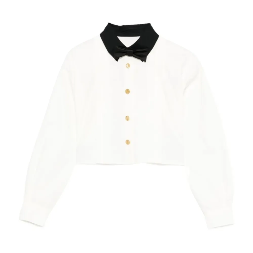 Cropped-Shirt mit Schleifenknotenkragen>Elisabetta Franchi Outlet