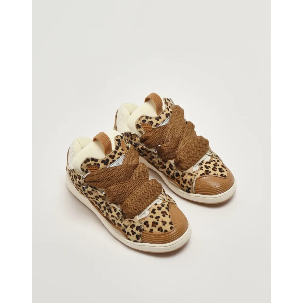 Die Lanvin Curb Sneakers kombinieren glattes Leder mit Einsätzen aus Ponyfell im Leopardenmuster für einen auffälligen, lässigen Alltagsschuh. Eine verstärkte Zunge und eine Gummisohle sorgen für angenehmen Tragekomfort und zuverlässige Traktion. Hauptmerkmale: Braun | Leopardato | Leder | Gummiaußensohle | Schnürverschluss mit breiten Schnürsenkeln | Gepolsterter Kragen | Einsätze aus Ponyfell im Leopardenmuster | Runde Zehenpartie | Kontrastierende Lederdetails | Verstärkte Zunge | Zusammensetzung & Pflege: Obermaterial: 100 % Leder | Innensohle: 100 % Leder | Besatz: 100 % Stoff (Ponyfell) | Futter: 100 % Stoff | Laufsohle: 100 % Gummi