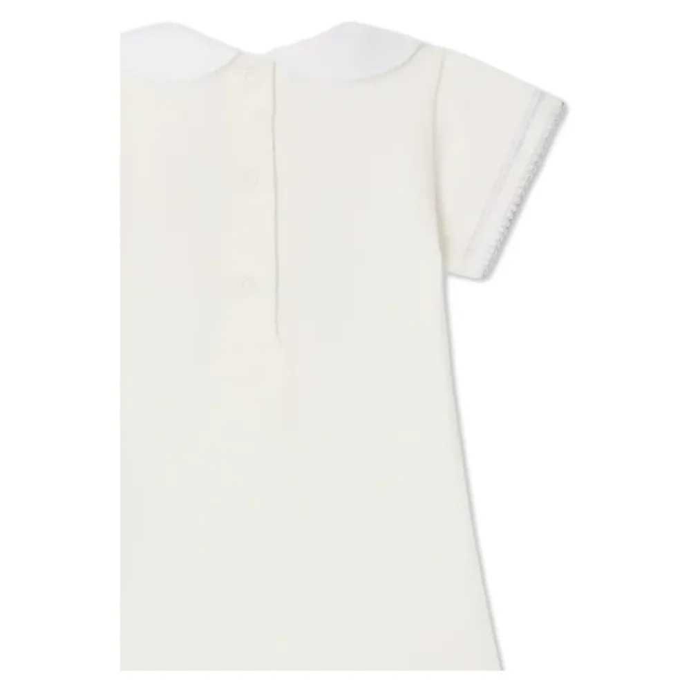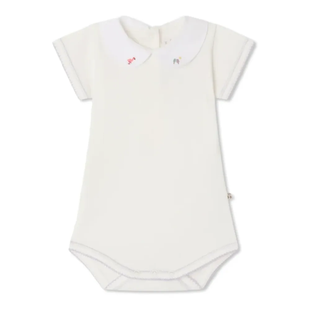 Der Bonpoint Cygne Bodysuit kombiniert einen klassischen Peter-Pan-Kragen mit zarter Kragenstickerei für einen eleganten Alltagsbody. Er zeichnet sich durch feine Verarbeitung und praktische Druckknopfverschlüsse für einfaches Anziehen aus. Hauptmerkmale: Weiß | Baumwolle | Atmungsaktives Gewebe | Weiches, sanftes Griffgefühl | Druckknopfverschlüsse hinten und im Schritt (Innennaht) | Verdeckter Druckknopfverschluss für einfaches Wechseln | Peter-Pan-Kragen mit gesticktem Flamingo und bunten botanischen Motiven | Wellen-/Pikot-Besatz | Lange Ärmel | Zusammensetzung und Pflege: 100 % Baumwolle | Maschinenwäsche 30 °C Schonwaschgang; nicht bleichen; nicht im Wäschetrockner trocknen; flach im Schatten trocknen; mäßig bügeln; nicht chemisch reinigen.