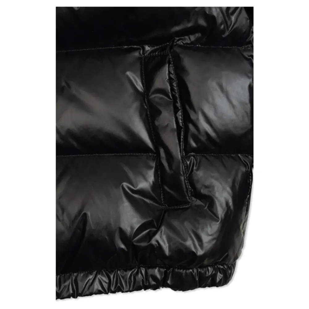 DAUNENJACKE MIT ABNEHMBAREM KRAGEN von Dolce & Gabbana Kids ist eine raffinierte Wahl für junge Modebegeisterte. Die klassische, leicht übergroße Silhouette und die markante horizontale Steppung, gefüllt mit Daunen, schaffen weiche, breite Paneele, die nicht nur Komfort, sondern auch ein einzigartiges Aussehen gewährleisten. Die äußere Schicht, gefertigt aus glattem, glänzendem synthetischem Stoff in tiefem Schwarz, strahlt moderne Eleganz mit einem minimalistischen Touch aus. Die einheitliche Farbpalette unterstreicht die Exklusivität des Designs, während das klar umrandete Patch mit dem „DG“-Monogramm auf der Brust als subtiler Akzent dient, der weltweit anerkannt wird. Der abnehmbare Kragen fügt praktische Anwendbarkeit hinzu und bietet Vielseitigkeit beim Styling. WARUM SOLLTEN SIE DIESES PRODUKT KAUFEN? * Herausragende Qualität und Komfort dank der natürlichen Füllung * Edles, minimalistisches Design inspiriert von italienischem Erbe * Funktionalität – der abnehmbare Kragen ermöglicht eine einfache Anpassung an Wetterbedingungen * Exklusives, wiedererkennbares „DG“-Logopatch