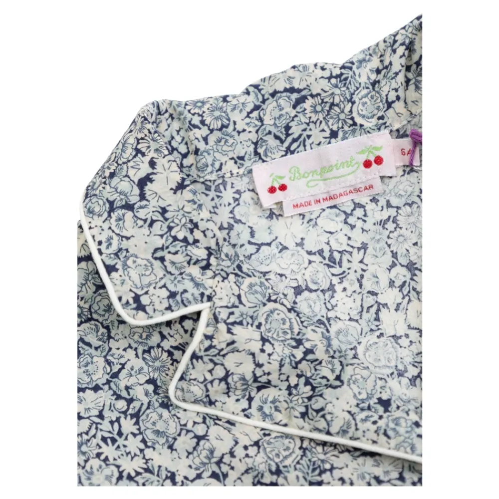 Bonpoint Dormeur Zweiteiliger Pyjama vereint klassische französische Eleganz mit atmungsaktiver Baumwolle für komfortable Nächte. Das Set besteht aus einem langärmeligen Oberteil mit Kragen und einer geraden Hose mit entspannter Passform, die mit kontrastierenden Paspeln versehen ist. Hauptmerkmale: Blau | Marineblau | Baumwolle | Atmungsaktives Gewebe | Leicht | Weiches Tragegefühl | Zweiteiliges Set | Brusttasche | Oberteil mit Knopfverschluss | Langärmeliges Hemd mit Kragen | Gerade Hose mit entspannter Passform | Allover-Blumendruck | Kontrastierende Paspeln | Abmessungen und Passform: Entspannte Passform | Gerades Bein | Zusammensetzung und Pflege: 100 % Baumwolle | Maschinenwäsche bei 30 C.