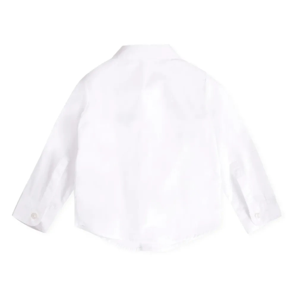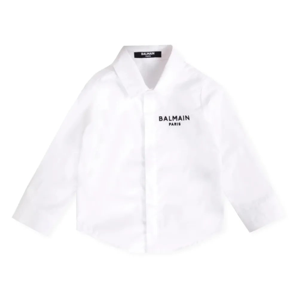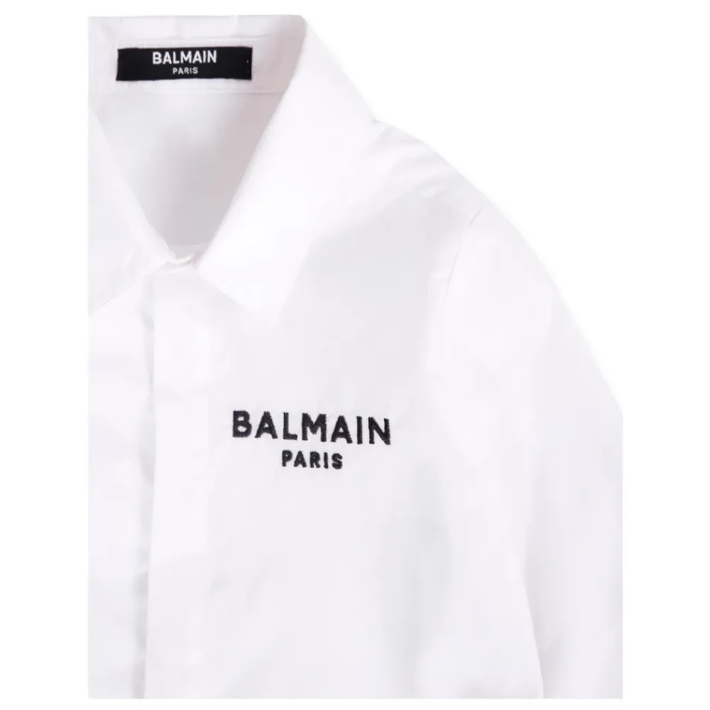 Werten Sie die Garderobe Ihres kleinen Mannes mit diesem weißen Baumwoll-Popeline-Hemd von Balmain auf. Mit langen Ärmeln, einem spitz zulaufenden Kragen und einem vorderen Verschluss mit versteckten Knöpfen ist dieses Hemd mit einem schwarzen Balmain-Logo bestickt. Hergestellt in Italien aus 100% Baumwolle. Maschinenwäsche bei 30°C.
