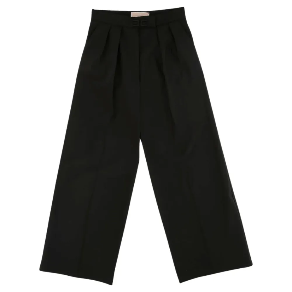 Werten Sie die Garderobe Ihres kleinen Mädchens mit diesen schwarzen Hosen von Elisabetta Franchi Kids auf. Mit hohem Bund, seitlichem Verschluss mit gesticktem Logo, zwei Seitentaschen und ausgestelltem Bein. Hergestellt aus einer luxuriösen Mischung aus Wolle, Viskose und Elastan mit Baumwollfutter. Hergestellt in Italien.