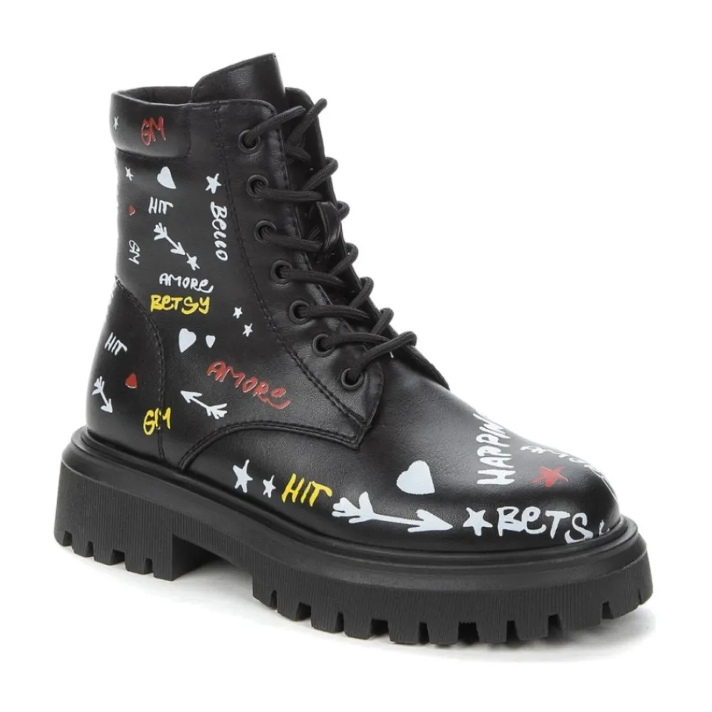 Kaufen Sie diese stilvollen Betsy-Stiefel für Mädchen aus unserer Kids-Kollektion. Diese schwarzen Stiefel bestehen aus synthetischem Stoff oben und Mikrofaserfutter. Produktcode: 938415/06-05. Hersteller: Shoes distribution UAB, Vilnius, Litauen.