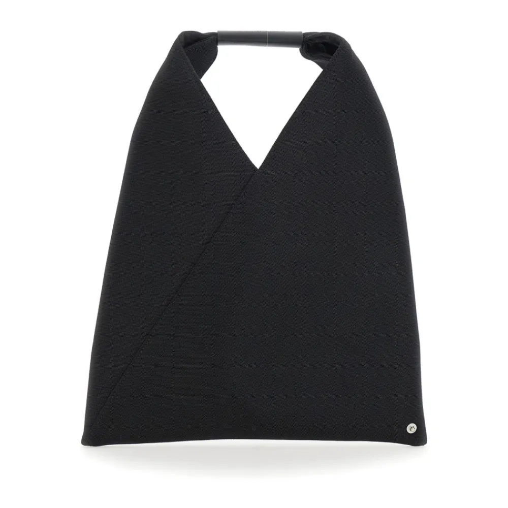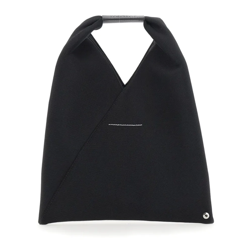 MM6 Maison Margiela präsentiert die ‚Japanese Small‘ Schwarze Handtasche mit Einzelstich-Logo aus Tech-Stoff für Mädchen, perfekt zum stilvollen Tragen von Essentials.