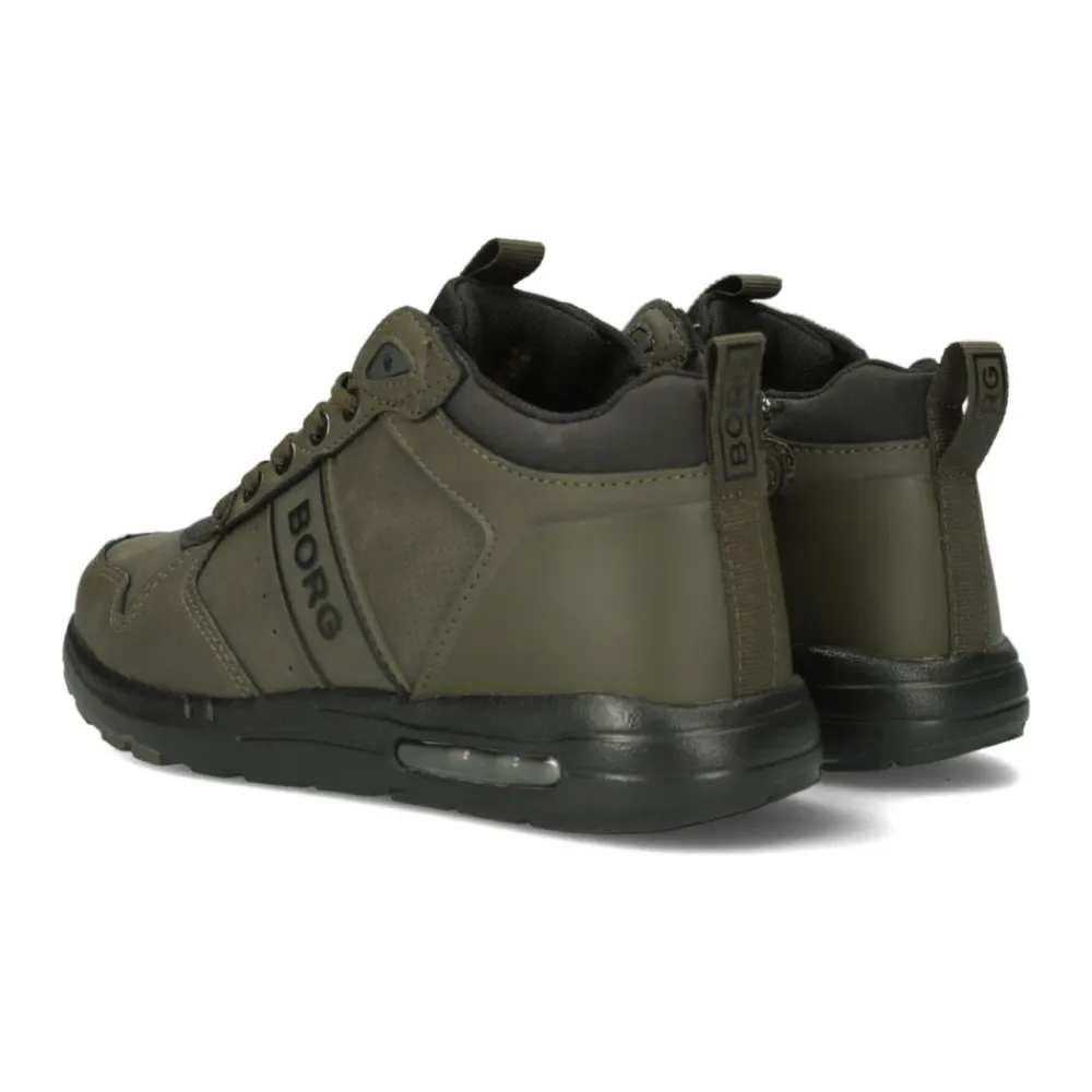 Treten Sie stilvoll auf mit diesen grünen Björn Borg High-Top-Sneakers X1000 MID CTR K MID TNL für Jungen. Perfekt für lässige und coole Looks, sind diese Sneakers ideal für lange Spaziergänge in der Stadt. Hergestellt aus robustem Nubuk-Look-Material mit schwarzen Details und Überzügen bieten sie sowohl Komfort als auch Stil. Der gepolsterte Knöchelkragen und die Mesh-Zunge bieten zusätzliche Knöchelunterstützung, während das Mesh-Futter eine bequeme Passform gewährleistet. Das herausnehmbare Fußbett sorgt für Bequemlichkeit. Heben Sie sich mit Markenlogos auf der Zunge, den Seiten und der Ferse hervor. Mit kleinen und großen Perforationen an den Seiten und der Zehenpartie sowie einem textilen Zuglasche an der Ferse sind diese Sneakers auch praktisch. Die schwarze Gummisohle mit griffigem Profil und einem Luftkissen in der Fersensohle machen diese Sneakers sowohl stilvoll als auch funktional.