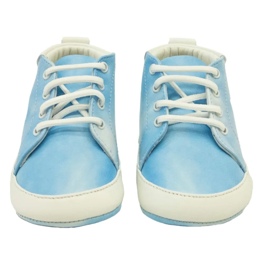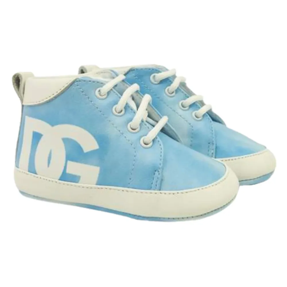 Heben Sie den Stil Ihres kleinen Gentleman mit diesen Dolce & Gabbana Kids Pre-Walker Sneakers in himmelblauem Kalbsleder hervor. Mit weißem Besatz und Logo, Schnürung und weichem Lederfutter sind diese in Italien gefertigten Schuhe sowohl stilvoll als auch bequem für Ihren Kleinen.