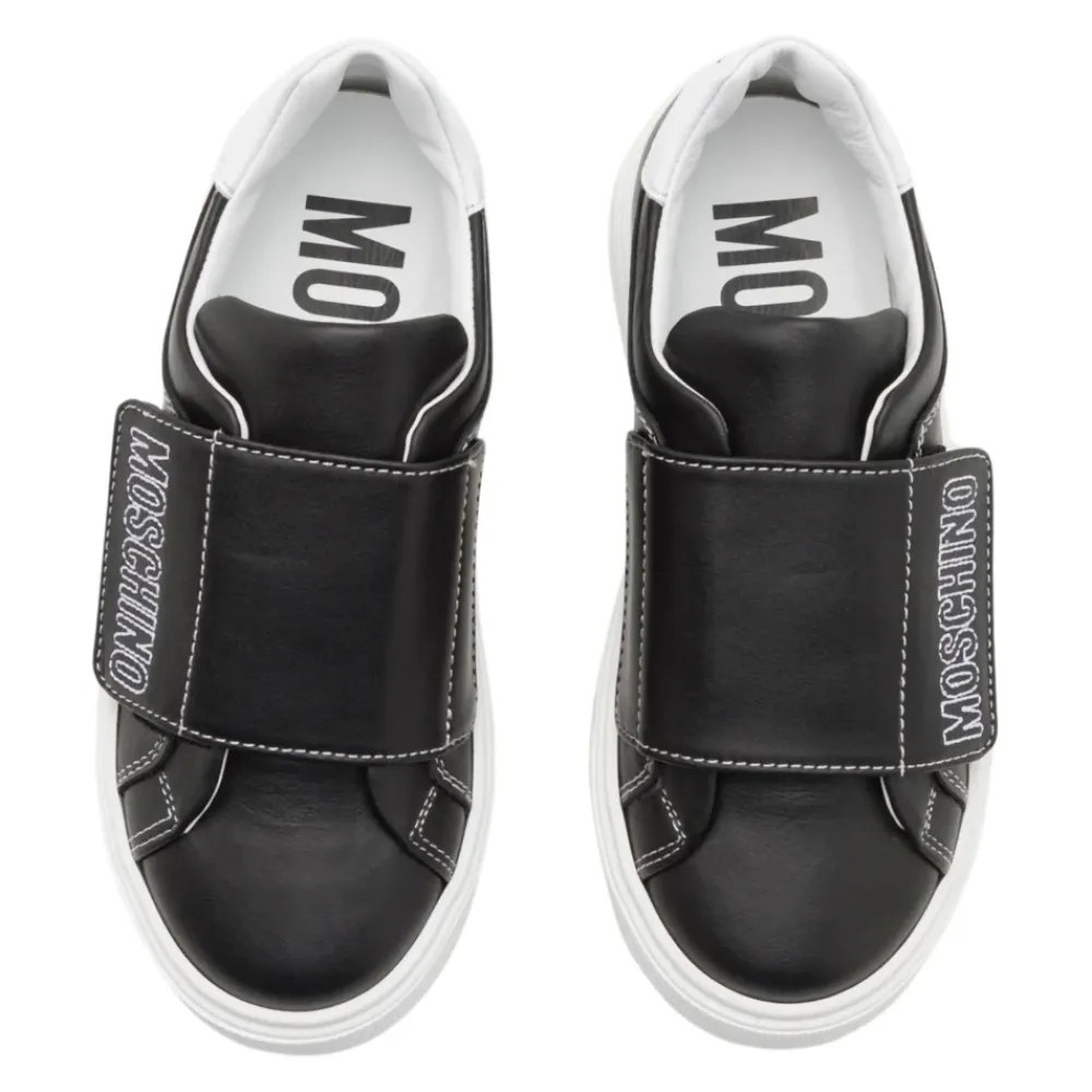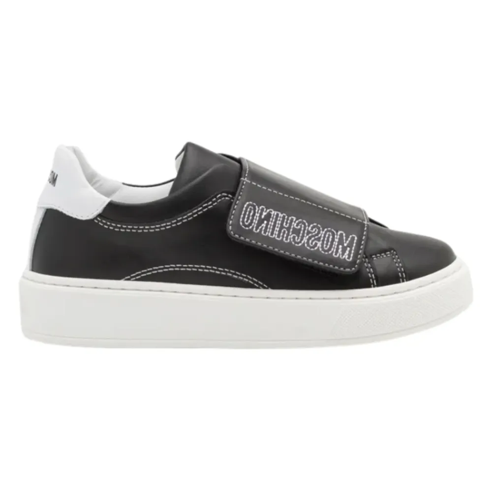 Verbessere deinen Stil mit diesen schwarzen Moschino Leder-Sneakers mit markanten weißen Details. Diese Sneakers wurden für Komfort und Stil entworfen und sind perfekt für jeden lässigen Ausflug. Wichtige Merkmale: Schwarz | Weiß | Leder | Klettverschluss vorne | Gesticktes weißes Kontrastlogo | Rundes Zehendesign | Flache Gummisohle | Zusammensetzung und Pflege: 100% Leder