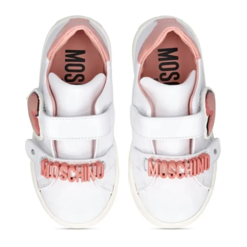 Steigern Sie den Stil Ihres kleinen Mädchens mit diesen weißen Low Top Sneakers von Moschino. Perfekt für modebewusste Kinder.