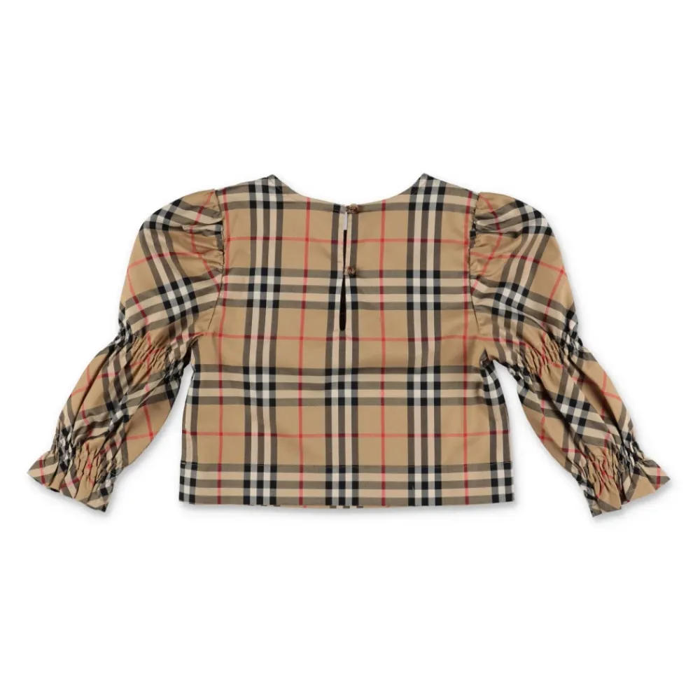 Erweitern Sie Ihre Garderobe mit der eleganten Bluse mit Karomuster von Burberry, gefertigt aus hochwertigem Baumwoll-Popeline für einen Hauch von Eleganz. Das ikonische Burberry-Karomuster verleiht diesem vielseitigen Kleidungsstück zeitlose Raffinesse. Wichtige Merkmale: Beige | Baumwoll-Popeline | Klassisches Burberry-Karomuster | Zusammensetzung und Pflege: 100% Baumwolle | Maschinenwäsche kalt, Trocknergeeignet bei niedriger Temperatur.