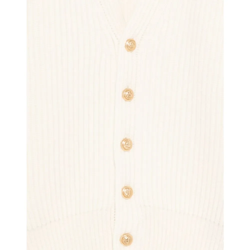 Der Balmain Emroidered Back Cardigan ist ein raffiniertes Layering-Teil, das sich durch seinen gestickten Rücken und die goldfarbene Knopfleiste auszeichnet. Er verbindet edle Details mit klassischem Cardigan-Stil für gehobene Alltagslooks. Hauptmerkmale: Beige | Creme | Knopfleiste mit goldenen Knöpfen | V-Ausschnitt | Gestickter Rücken | Knopfleiste mit goldenen Knöpfen