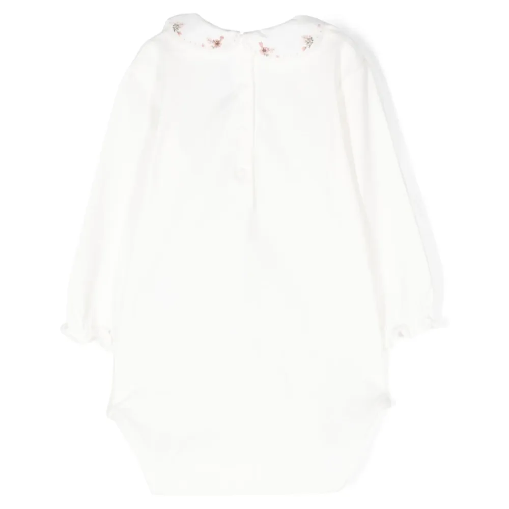 Der weiße Body mit langen Ärmeln von Tartine et Chocolat bietet eine Mischung aus Komfort und Stil, perfekt für den Alltag. Sein herausragendes Merkmal ist die zarte Blumenstickerei am Kragen, die einen Hauch von Eleganz verleiht. Wichtige Merkmale: Weiß | Baumwolle | Knöpfe am Steg | Abgerundeter Kragen mit Blumenstickerei | Lange Ärmel | Maße und Passform: Normale Passform | Zusammensetzung und Pflege: 95% Baumwolle | 5% Stretch | Maschinenwäsche kalt, Trocknergeeignet bei niedriger Temperatur
