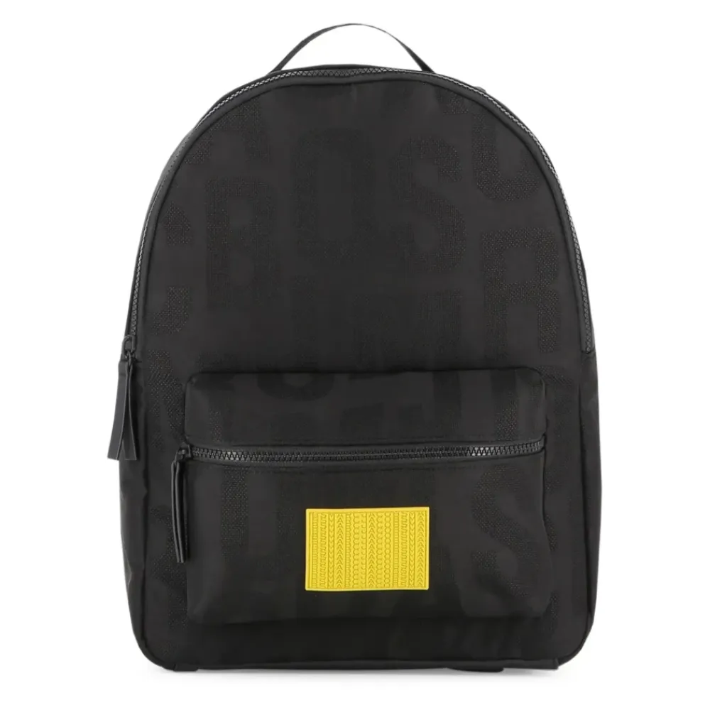 Machen Sie Ihr Kleines mit diesem stilvollen Marc Jacobs Schulranzen bereit für die Schule. Mit Logoaufdruck, vorderer Reißverschlusstasche, gelbem Akzentpatch, Tragegriff, und verstellbaren Schultergurten. Hergestellt in China. Maße: Höhe 37 cm, Breite 27 cm, Tiefe 14 cm.