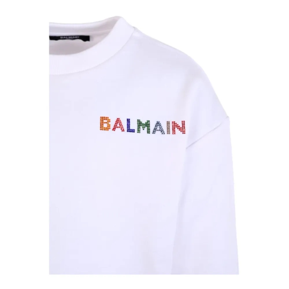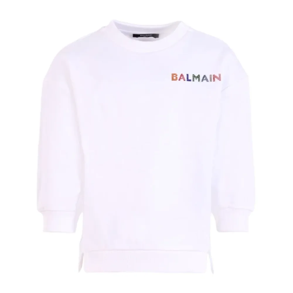 Werten Sie die Garderobe Ihres jungen Mädchens mit diesem klassischen weißen Balmain-Sweatshirt auf. Hergestellt aus weicher 100% Baumwolle, bietet es eine bequeme Passform und eignet sich perfekt für stilvolles Schichten.