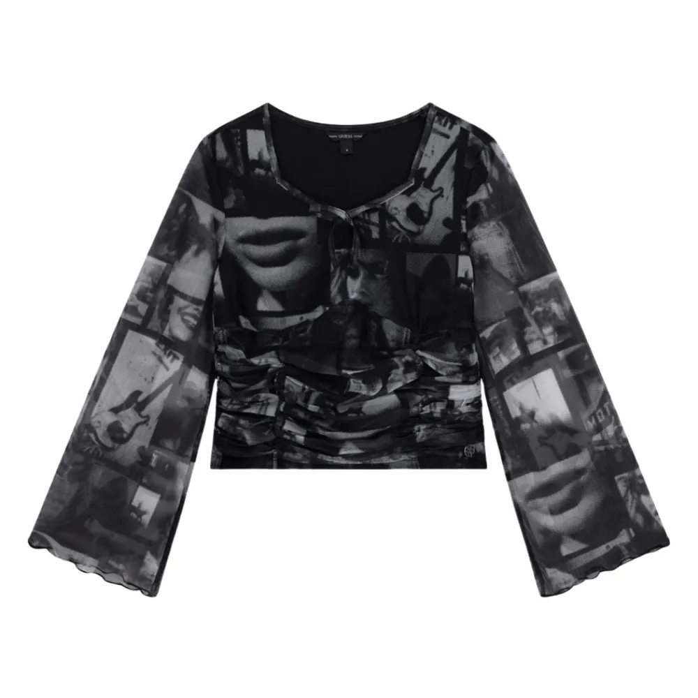Guess Mädchen Langarm-Mesh-Bluse aus Polyester-Elastan-Mischung.
