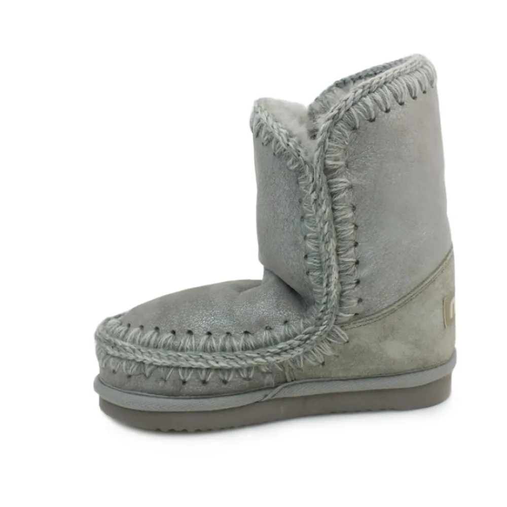Mou Eskimo Kid Boot – ein Schlupf-Winterstiefel aus der Eskimo-Familie von Mou, designt für Komfort bei kaltem Wetter mit einem Metallic-Finish und Häkelstich-Details. Modellcode FI101000 (Händlernummer kann variieren). Hauptmerkmale: Silber | Leder | Warmes Futter im Shearling-Stil | Strapazierfähige Gummisohle | Schlupfverschluss (da infilare) | Stützende Fersenkappe | Gummi-Außensohle für Traktion | Runde Zehenpartie | Lurex-Detail | Handgehäkelte Wollstiche | Logo-Patch an der Ferse | Maße & Passform: Fällt klein aus – wir empfehlen, eine Nummer größer zu bestellen. | Materialzusammensetzung & Pflege: Tomaia: Pelle | Interno: Pelle | Suola: Gomma | Von direktem Licht, Hitze und Regen fernhalten. Bei Nässe sofort mit einem weichen Tuch trocknen. Mit Papier ausfüllen, um die Form zu erhalten und Feuchtigkeit aufzunehmen; möglichst in einem Flanellbeutel aufbewahren. Mit einem weichen, trockenen Tuch reinigen.